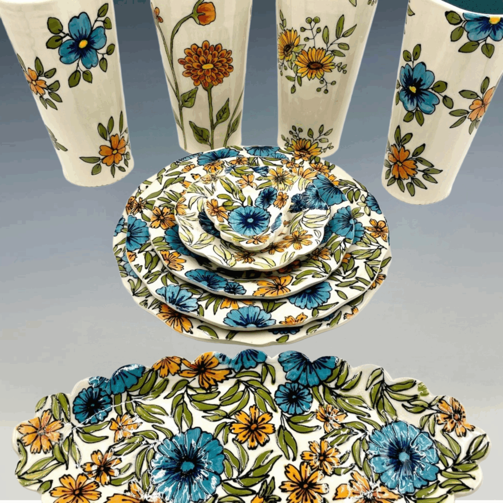 A curated selection of my most loved handcrafted pieces — featuring Sunflowers, Blue & Orange Florals, and Nature-Inspired Pottery Mugs. Each piece is hand-painted, one-of-a-kind, and created in small batches in my Georgia studio.