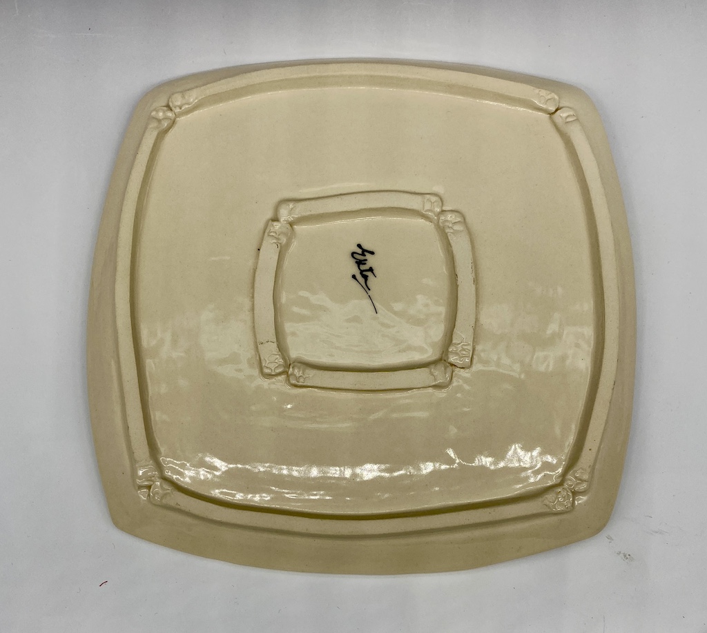 Bring vibrant artistry to your table with this Hand-Painted Blue Peony Porcelain Square Plate, measuring 9.5″ x 9.5″. Each floral motif is first lightly embossed into the porcelain, then carefully hand-painted to create rich depth, texture, and color. The blue peonies stand out beautifully against the creamy porcelain background, accented with green leaves and tiny red buds.